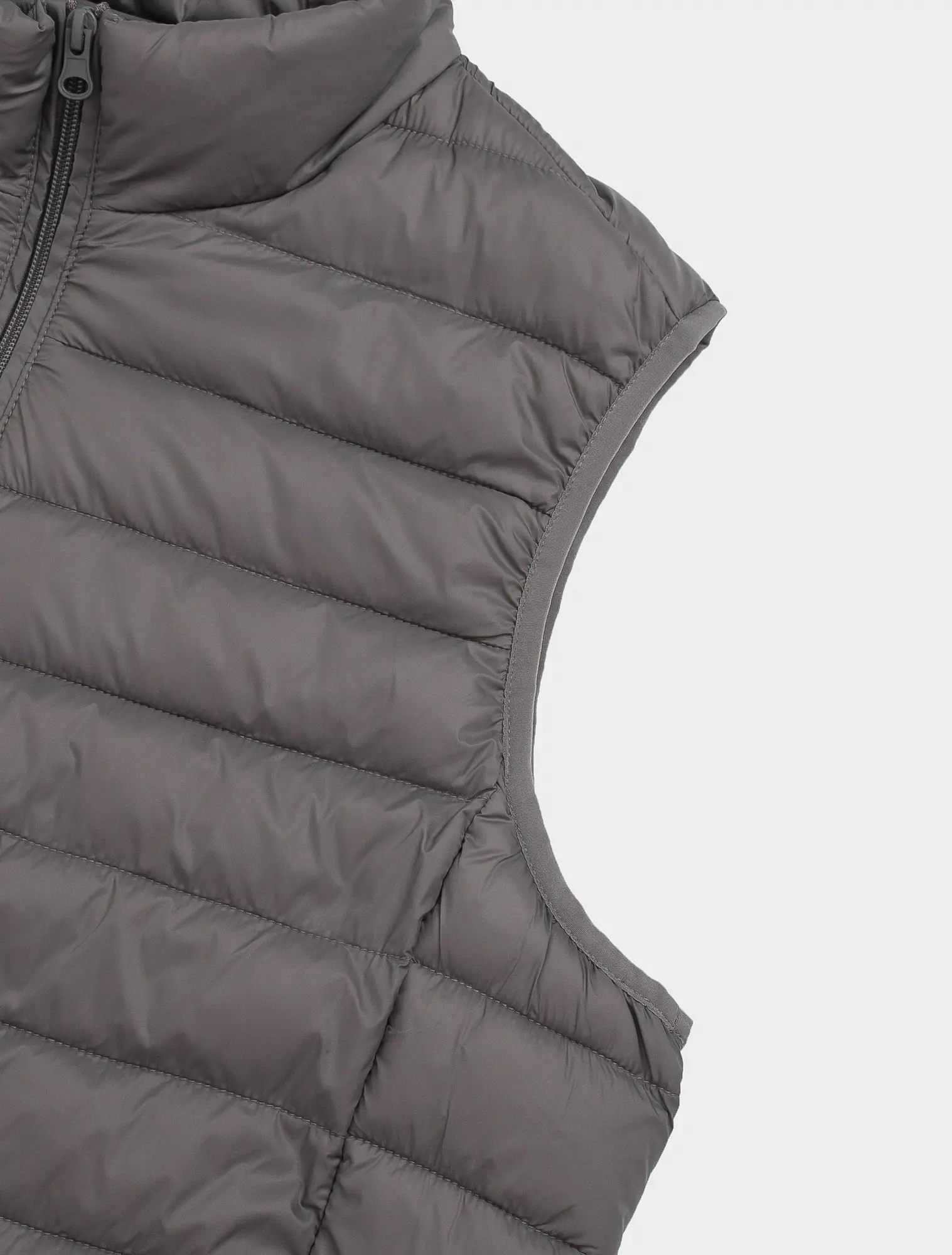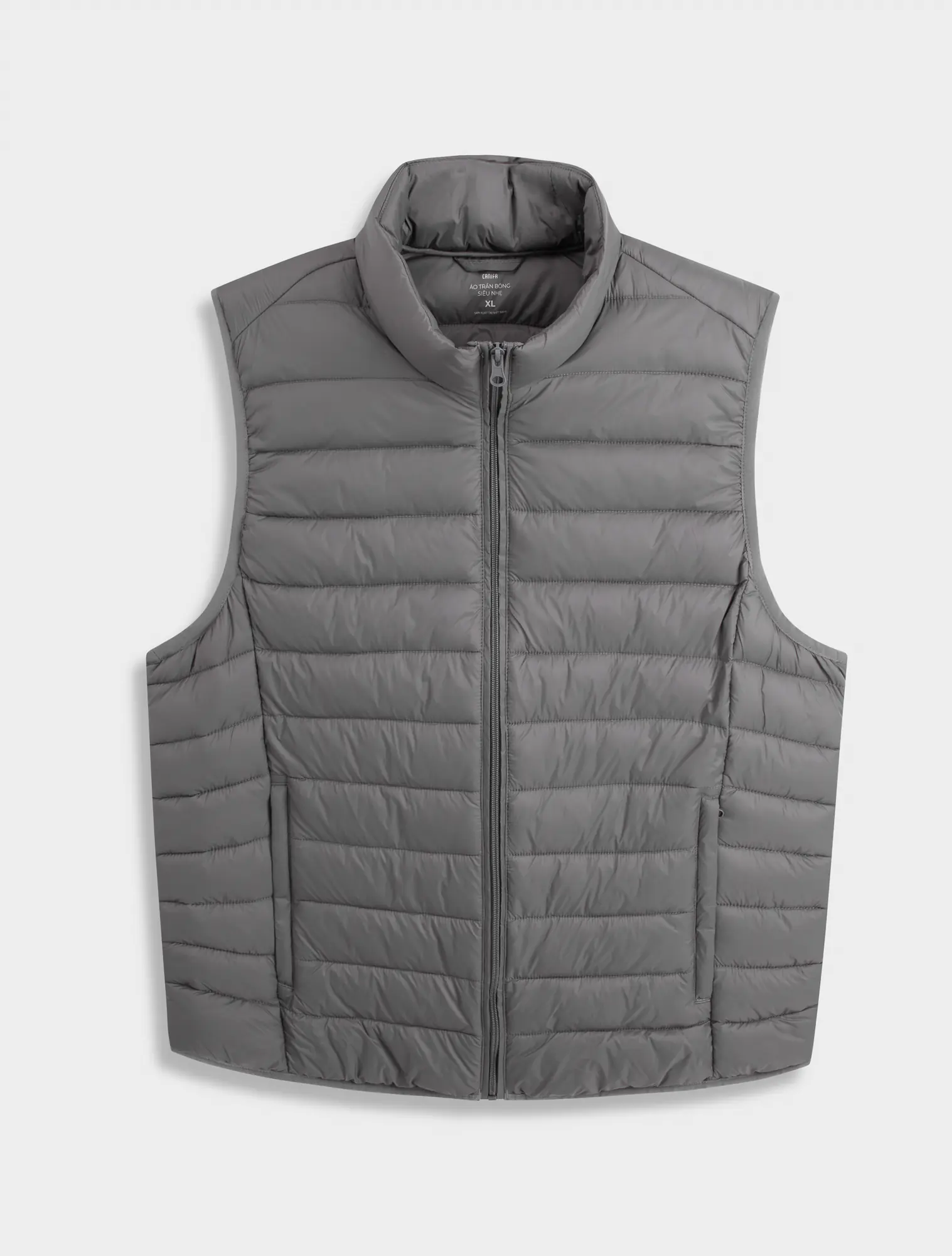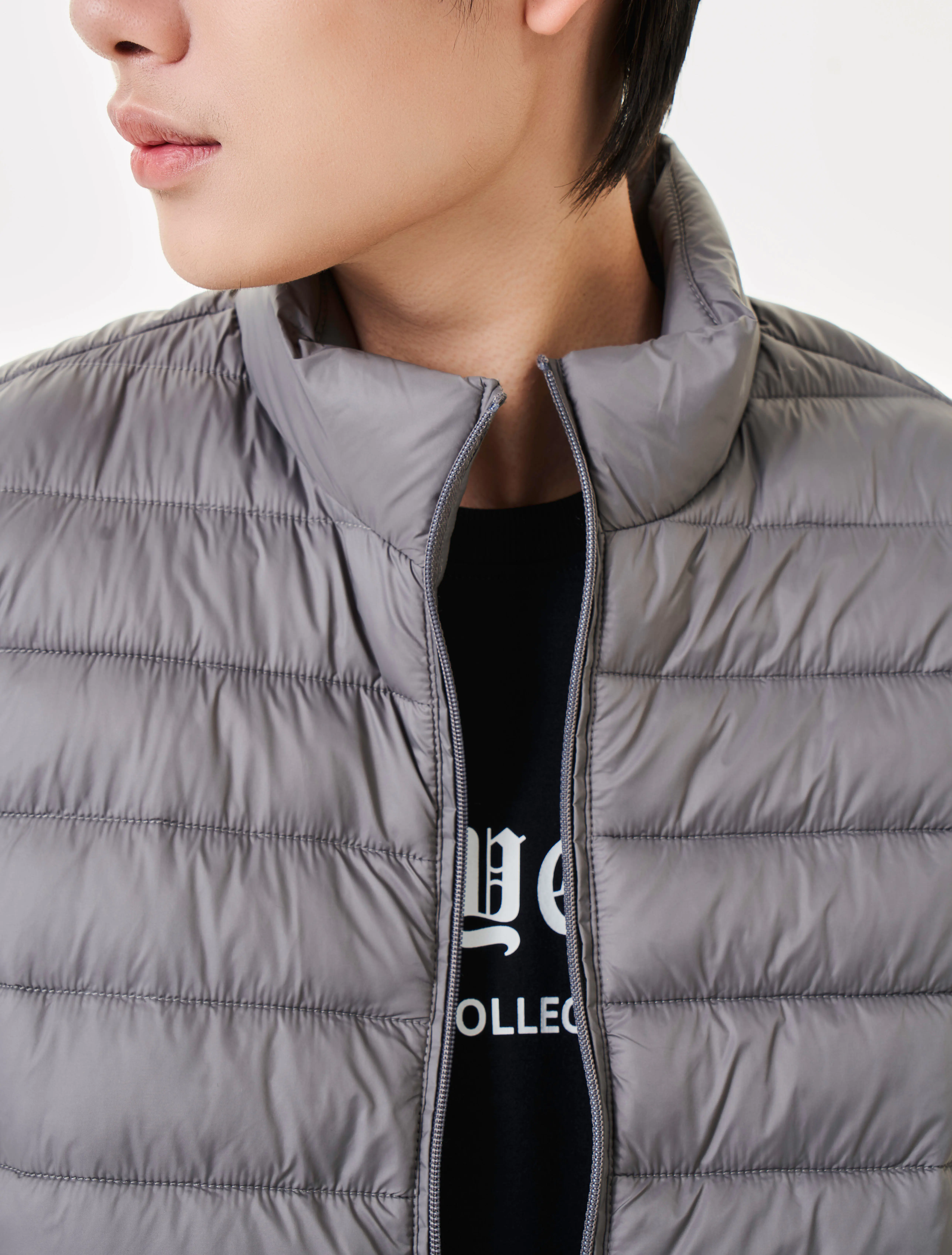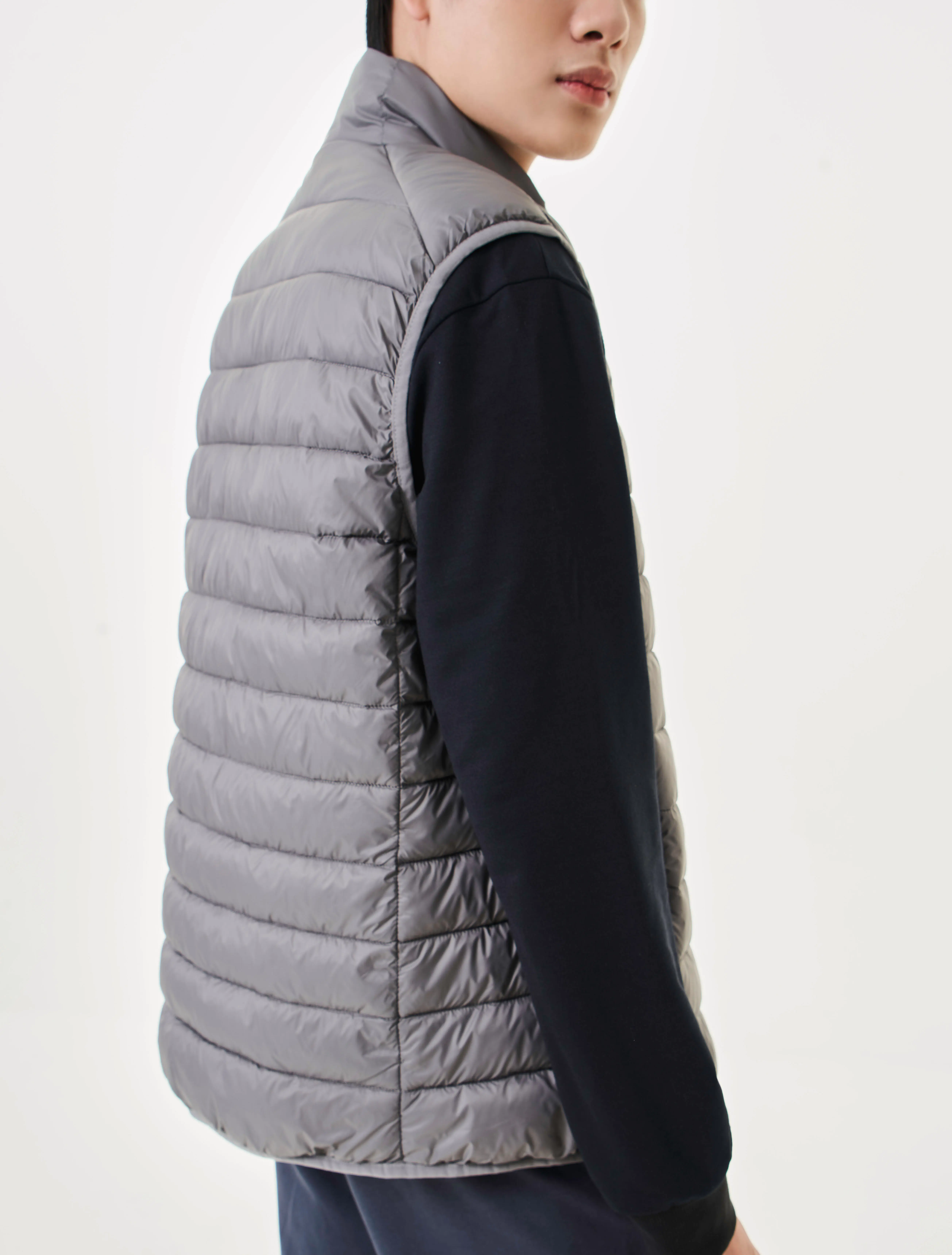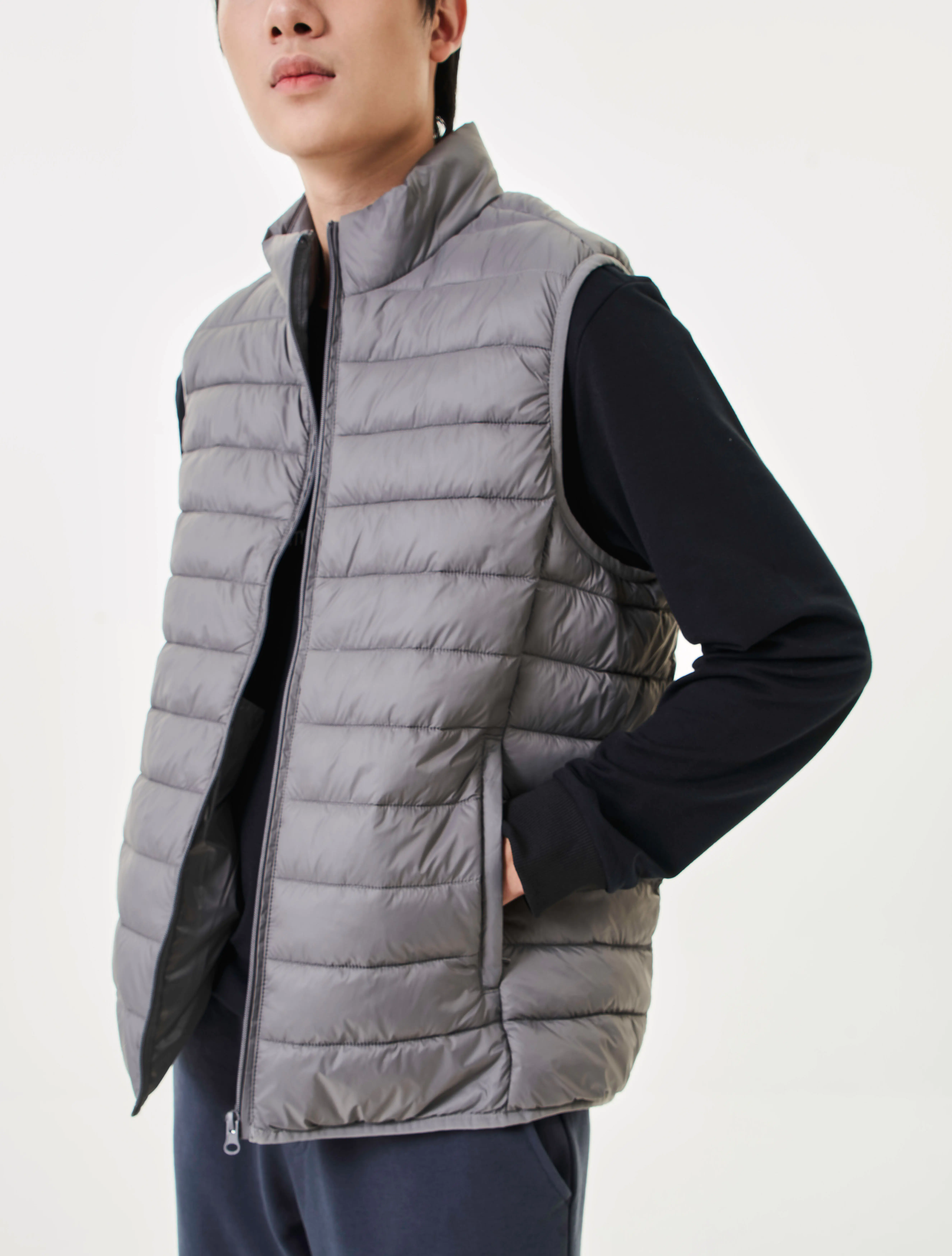 Áo khoác gilet chần bông nam có mũ được thiết kế vừa vặn thoải mái, có thể kết hợp với nhiều lớp áo. Áo có trọng lượng nhẹ, mang lại trải nghiệm mặc nhẹ nhàng, dễ chịu mà vẫn có khả năng giữ ấm tốt nhờ cấu trúc vải và bông kẹp ba lớp. Áo có thể gập gọn nhét vào túi ẩn trên lót áo.