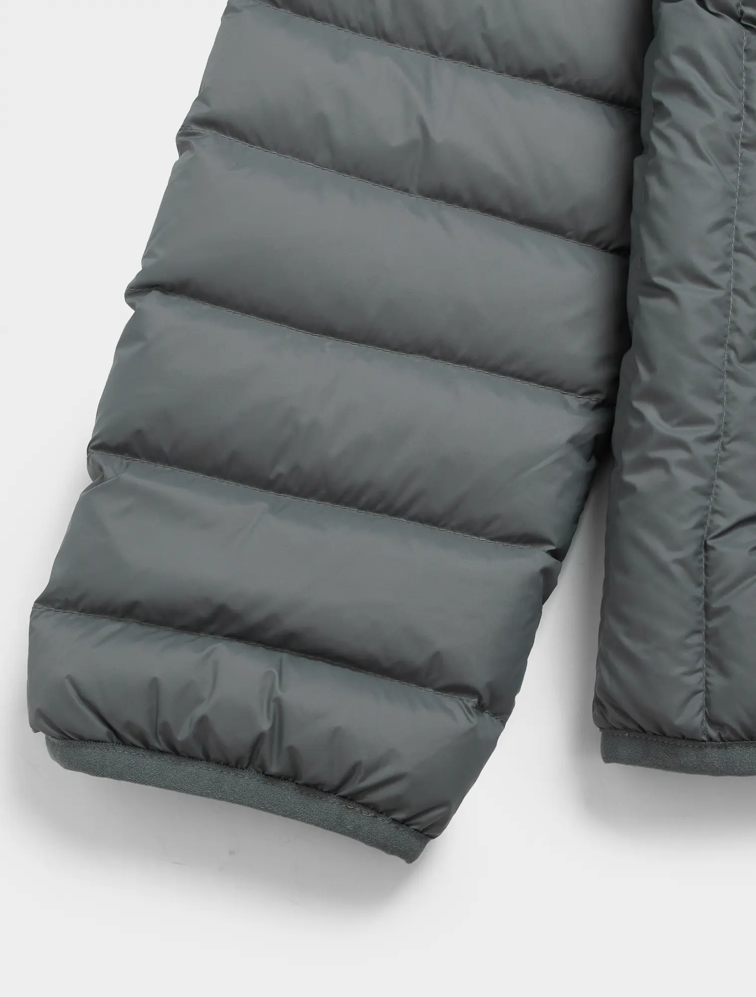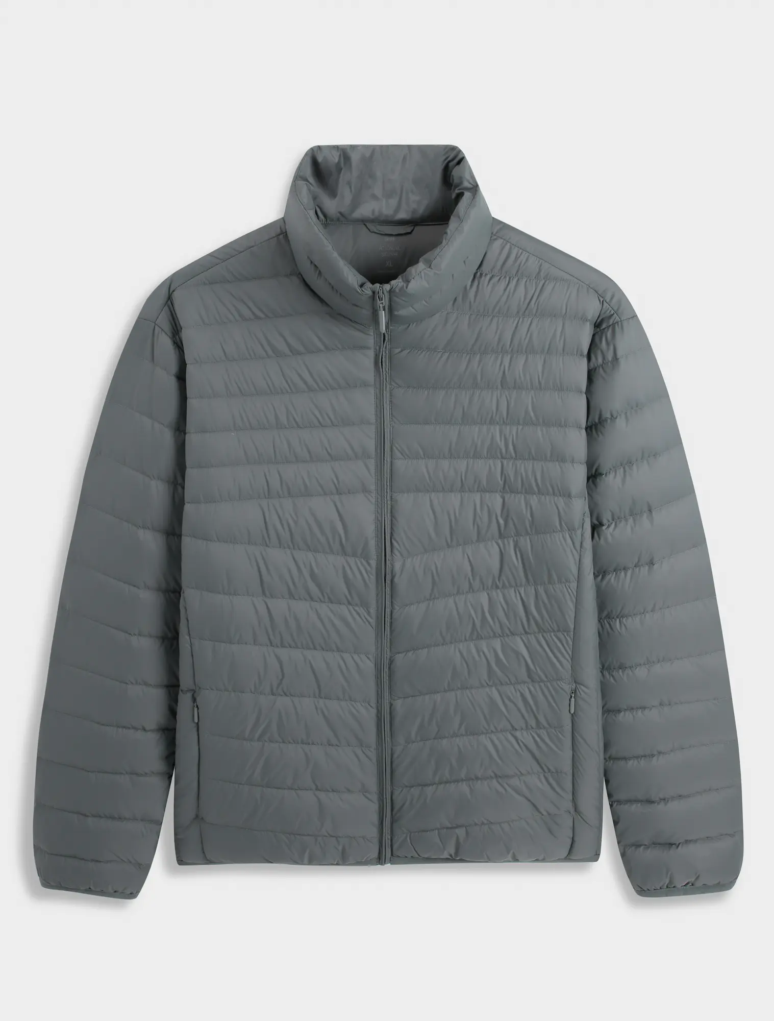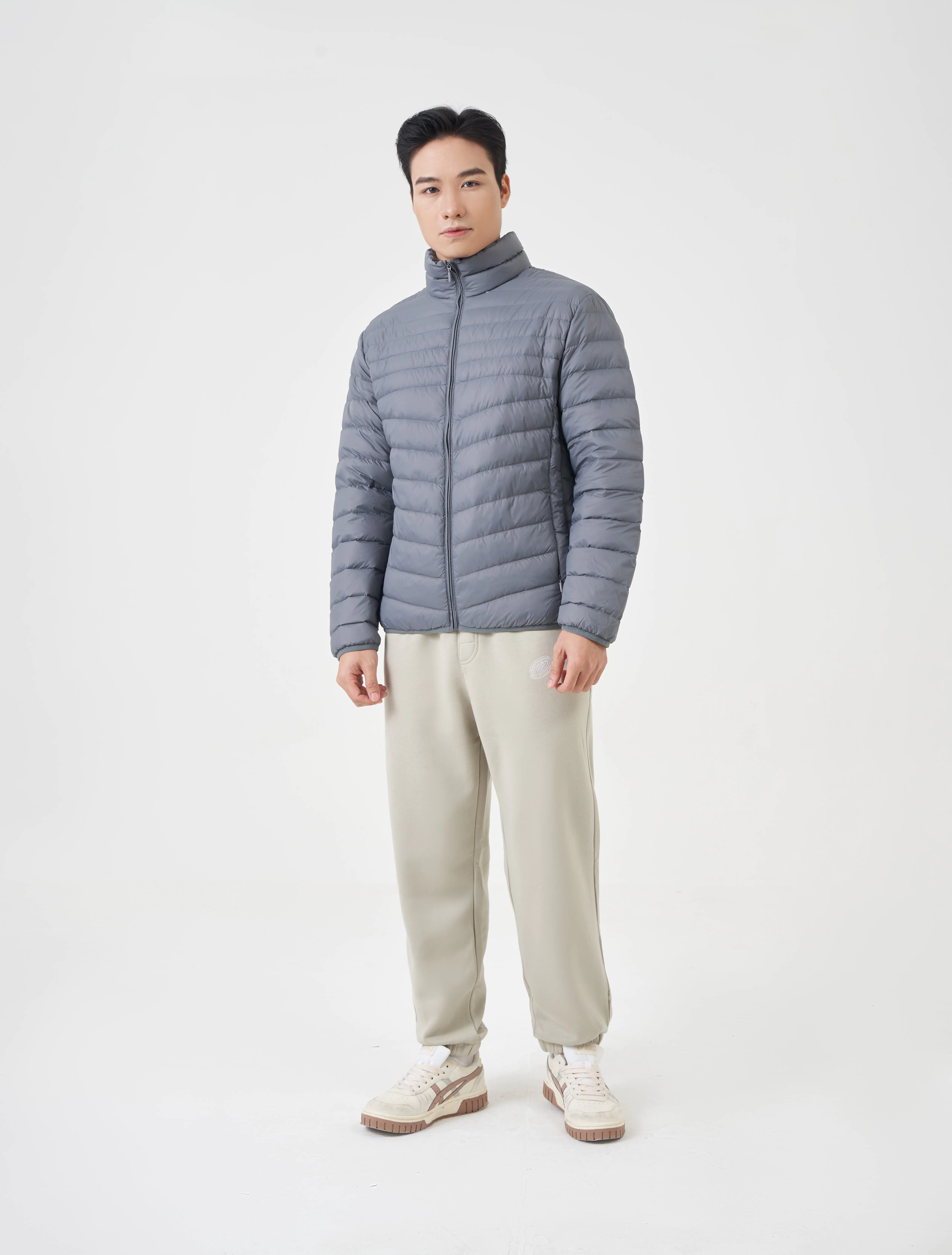 Áo khoác lông vũ nam, cổ cao, chống thấm nước. Phần cửa tay, gấu thân có thiết kế bo chun kín tránh mất nhiệt khi mặc.