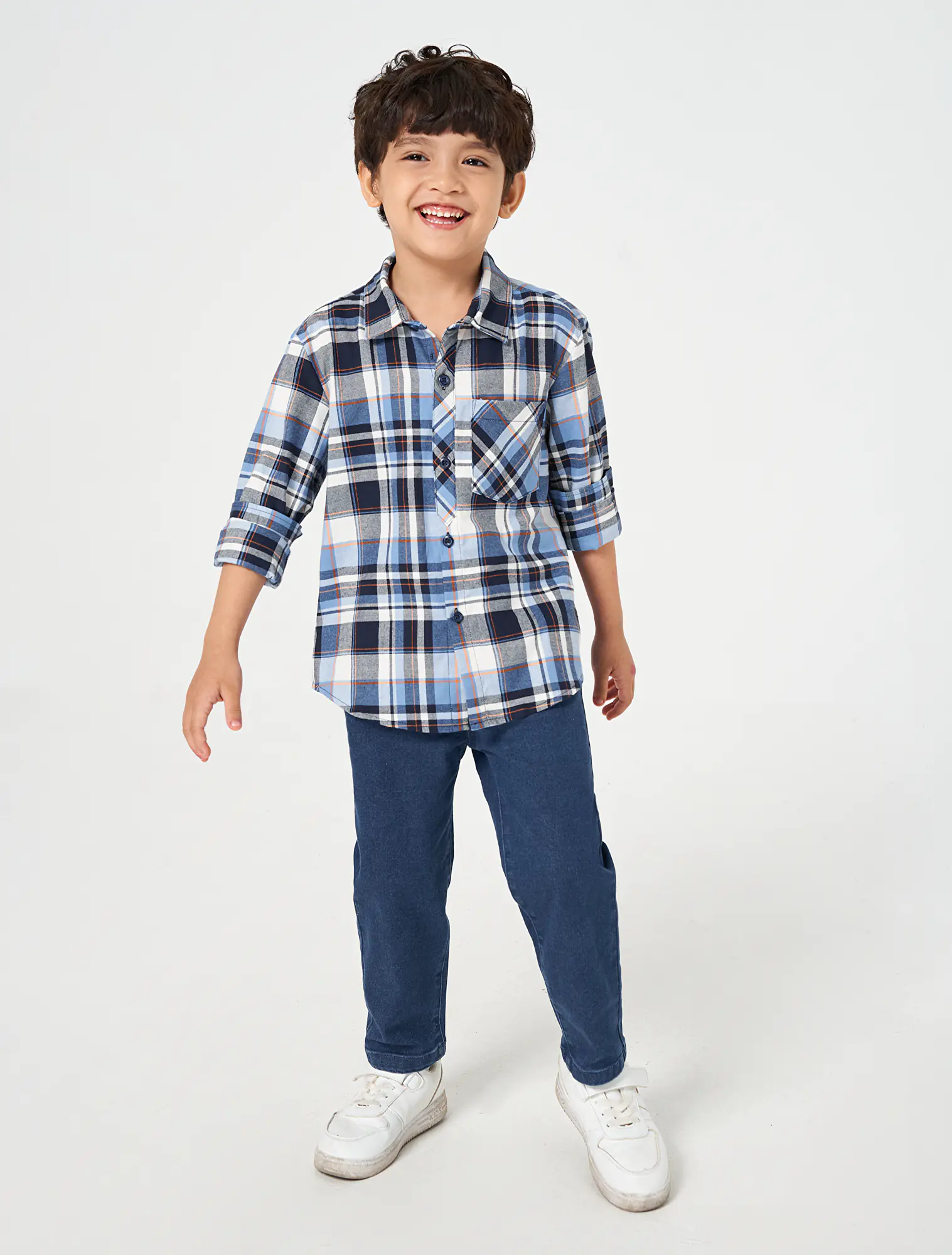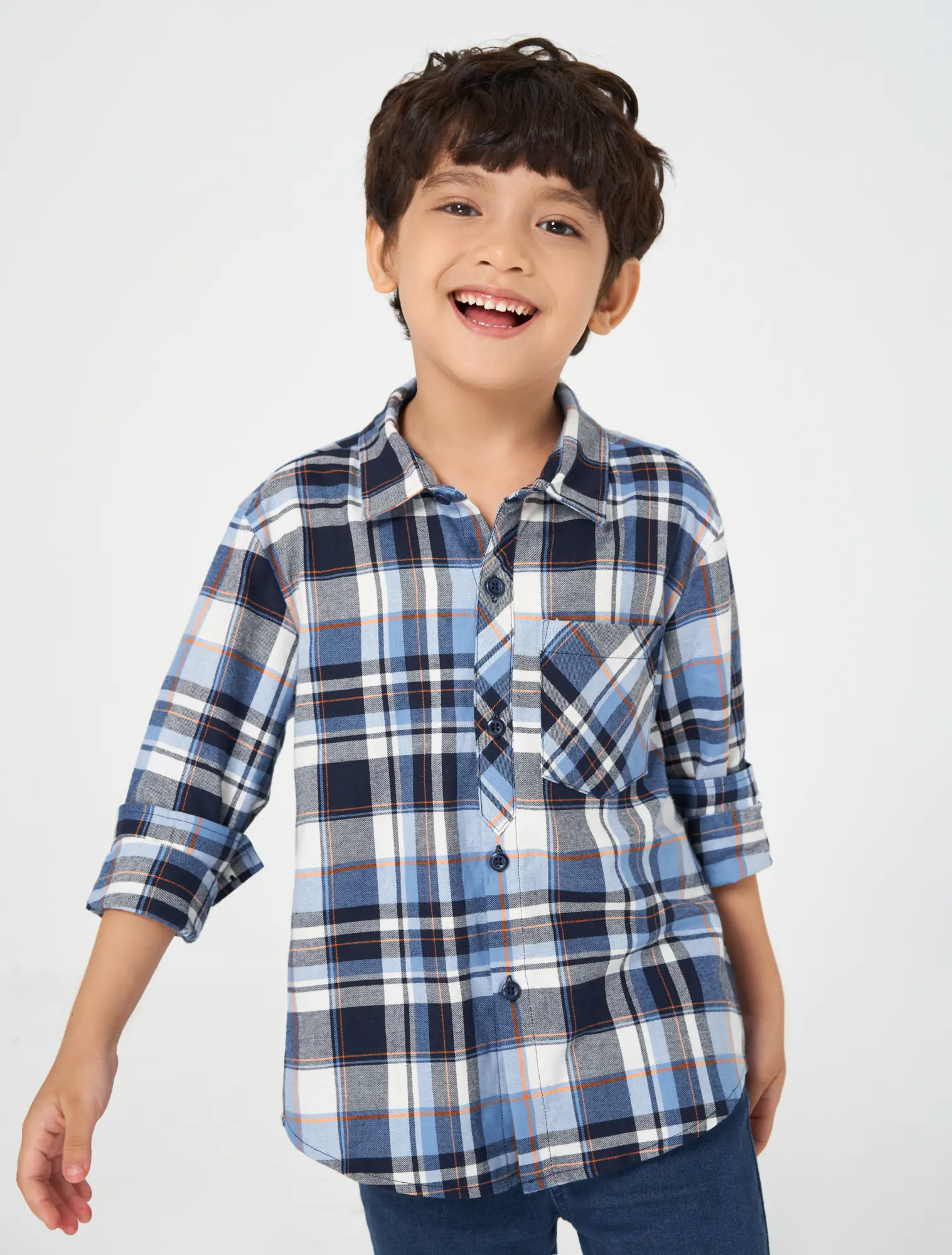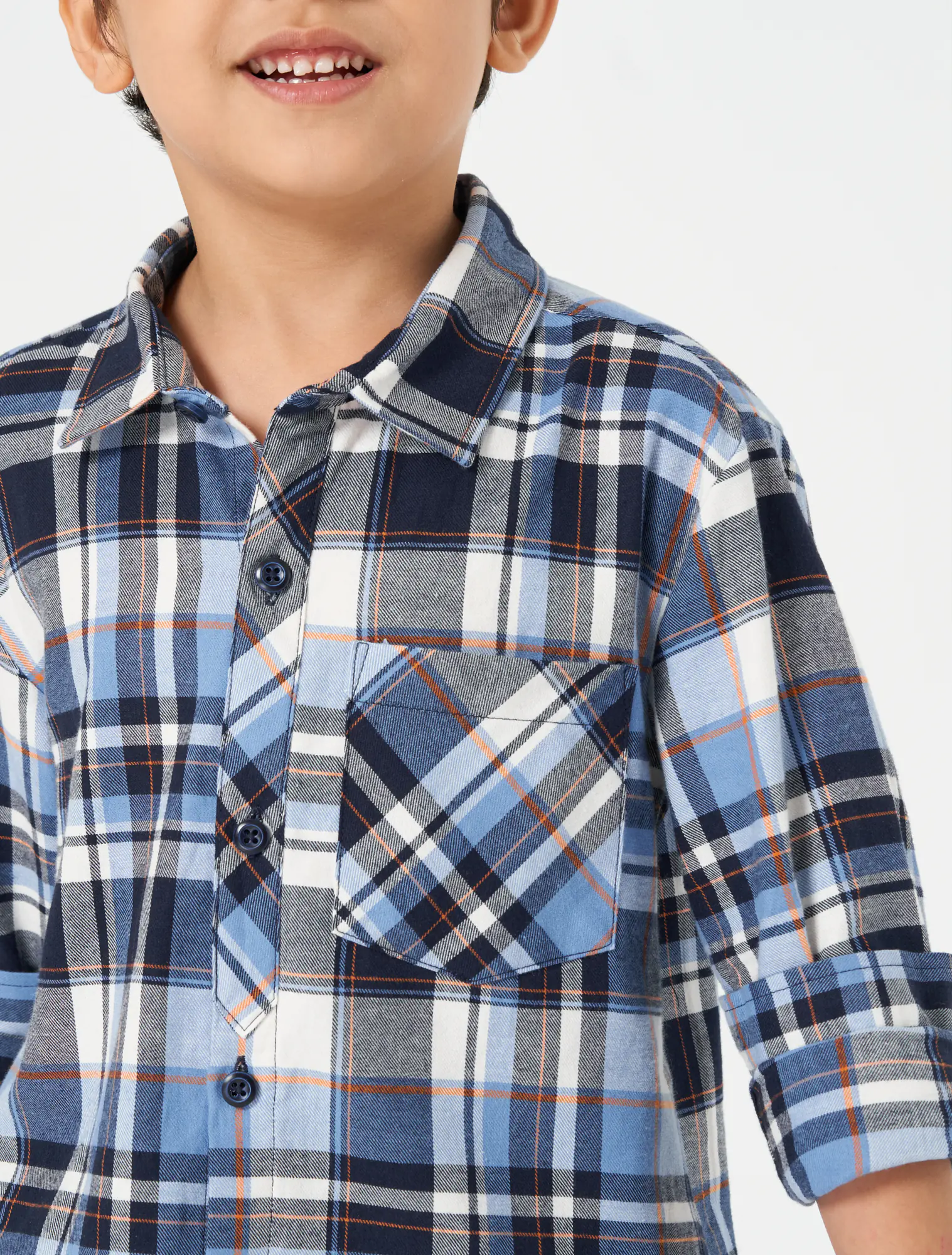 Áo sơ mi bé trai cotton cổ đức dài tay họa tiết kẻ