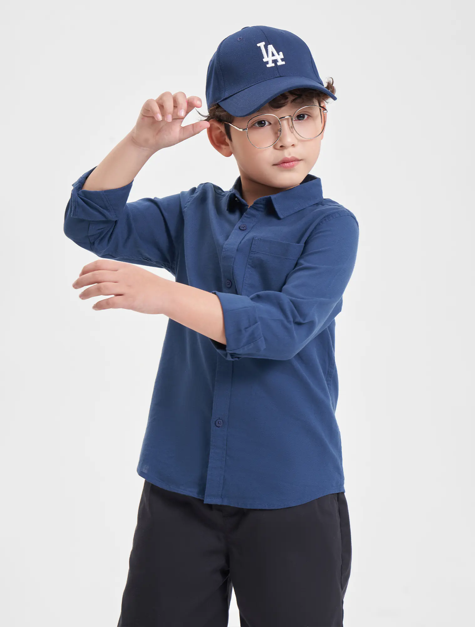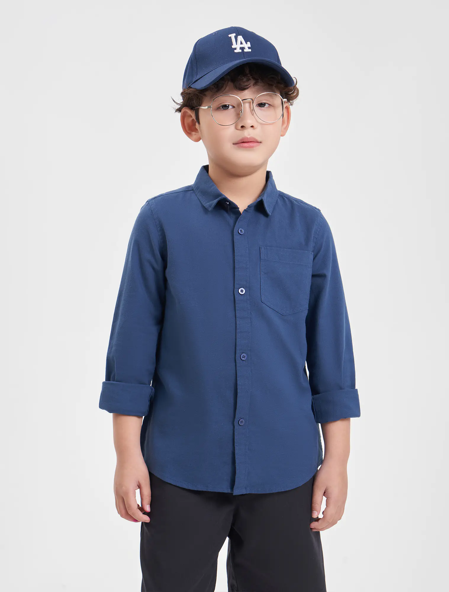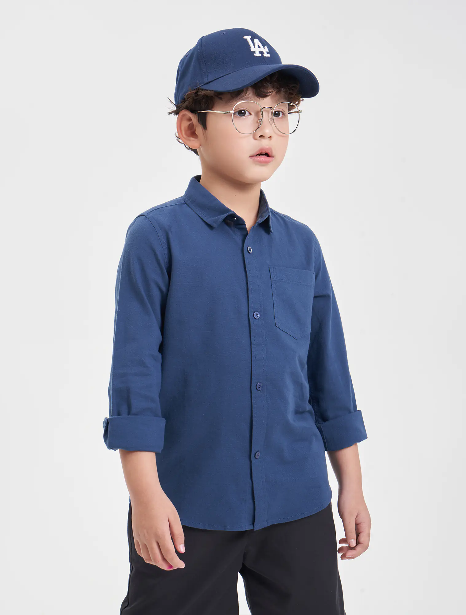 Áo sơ mi bé trai cotton cổ đức tay dài có túi ốp ngực