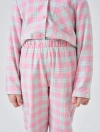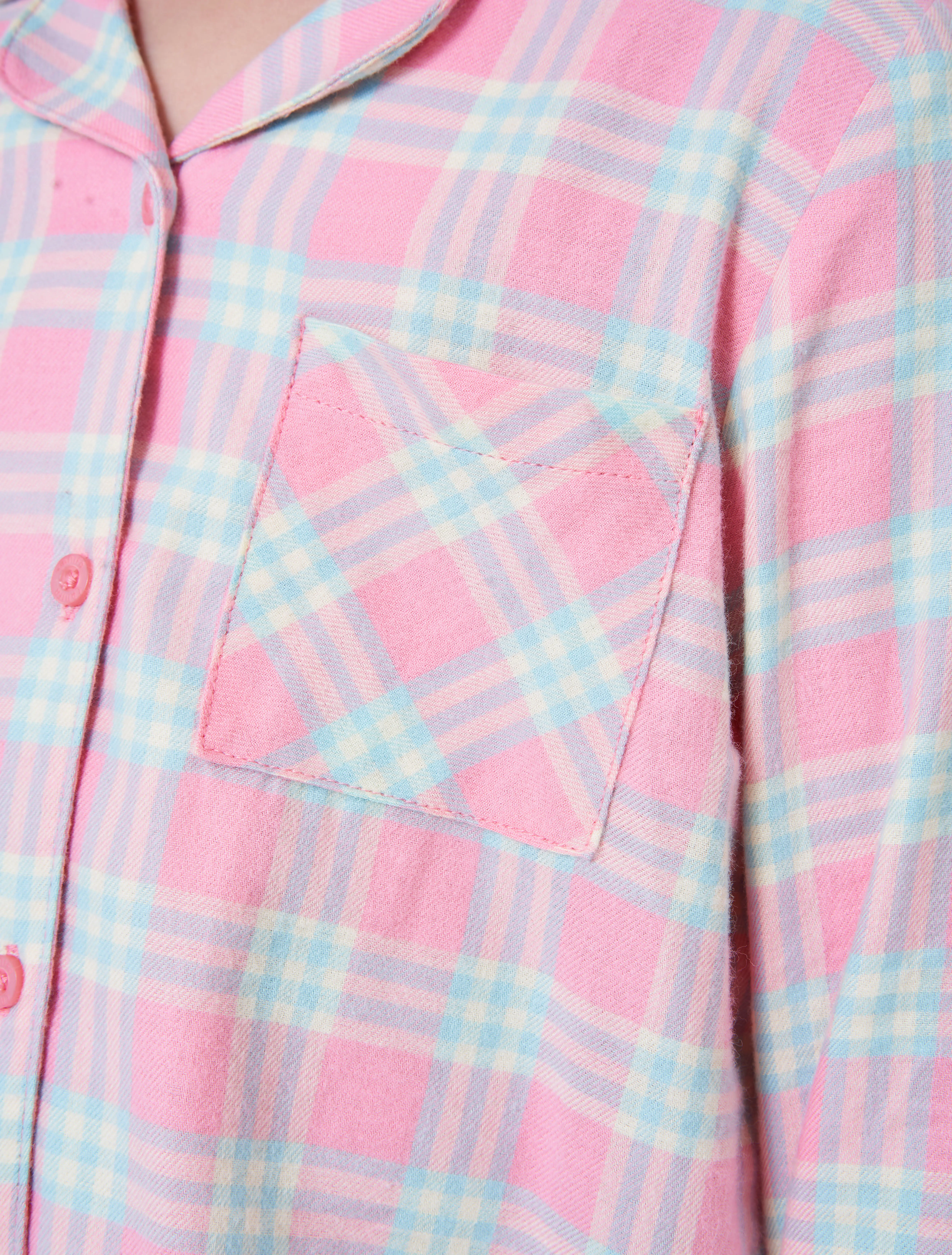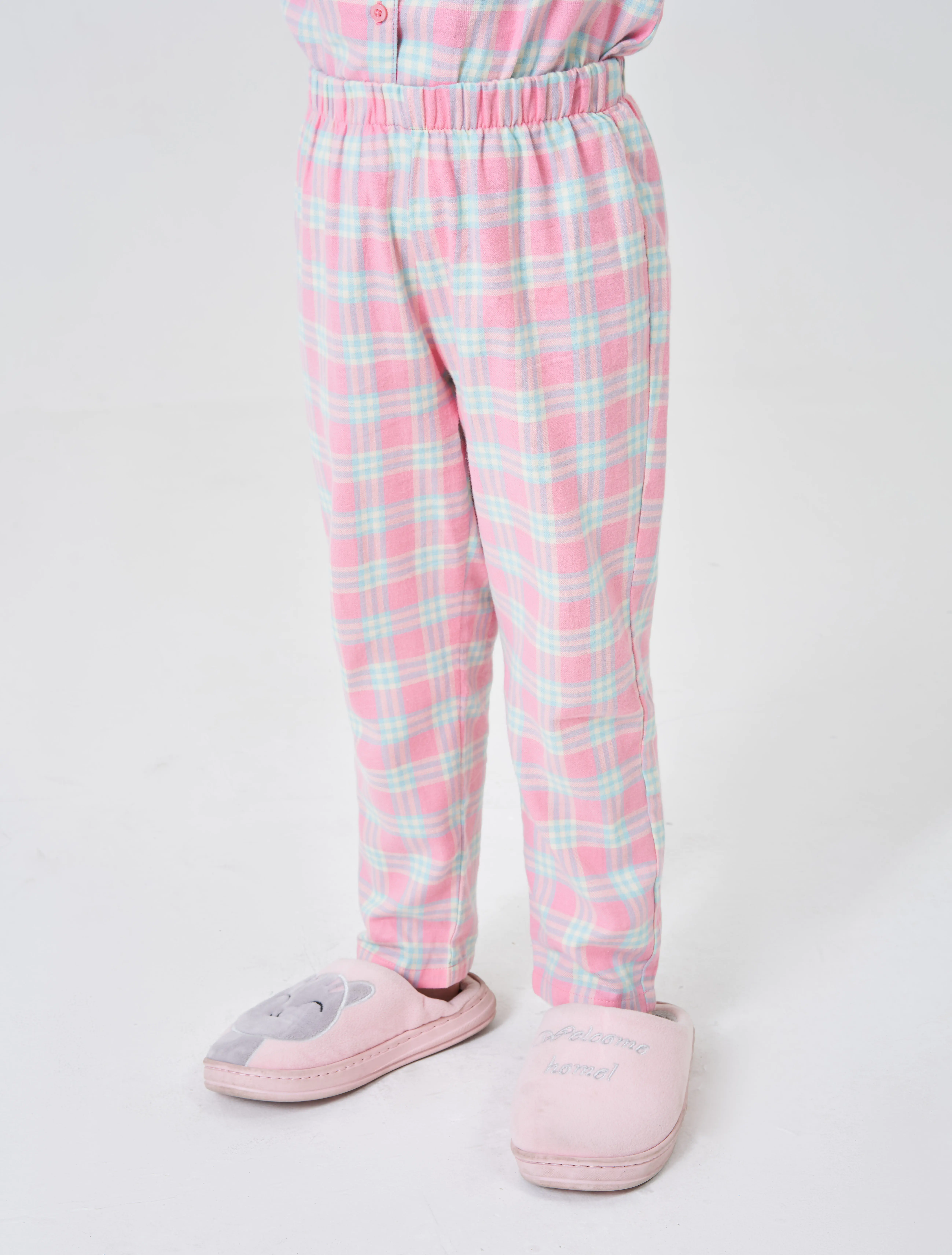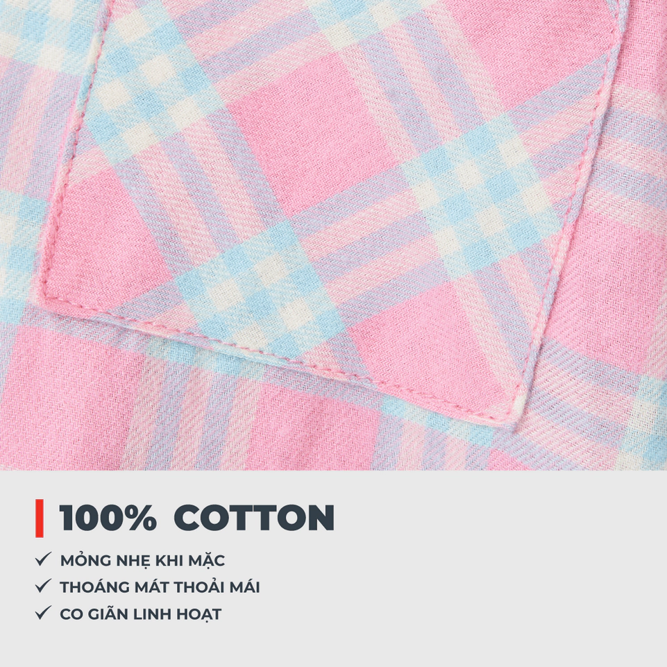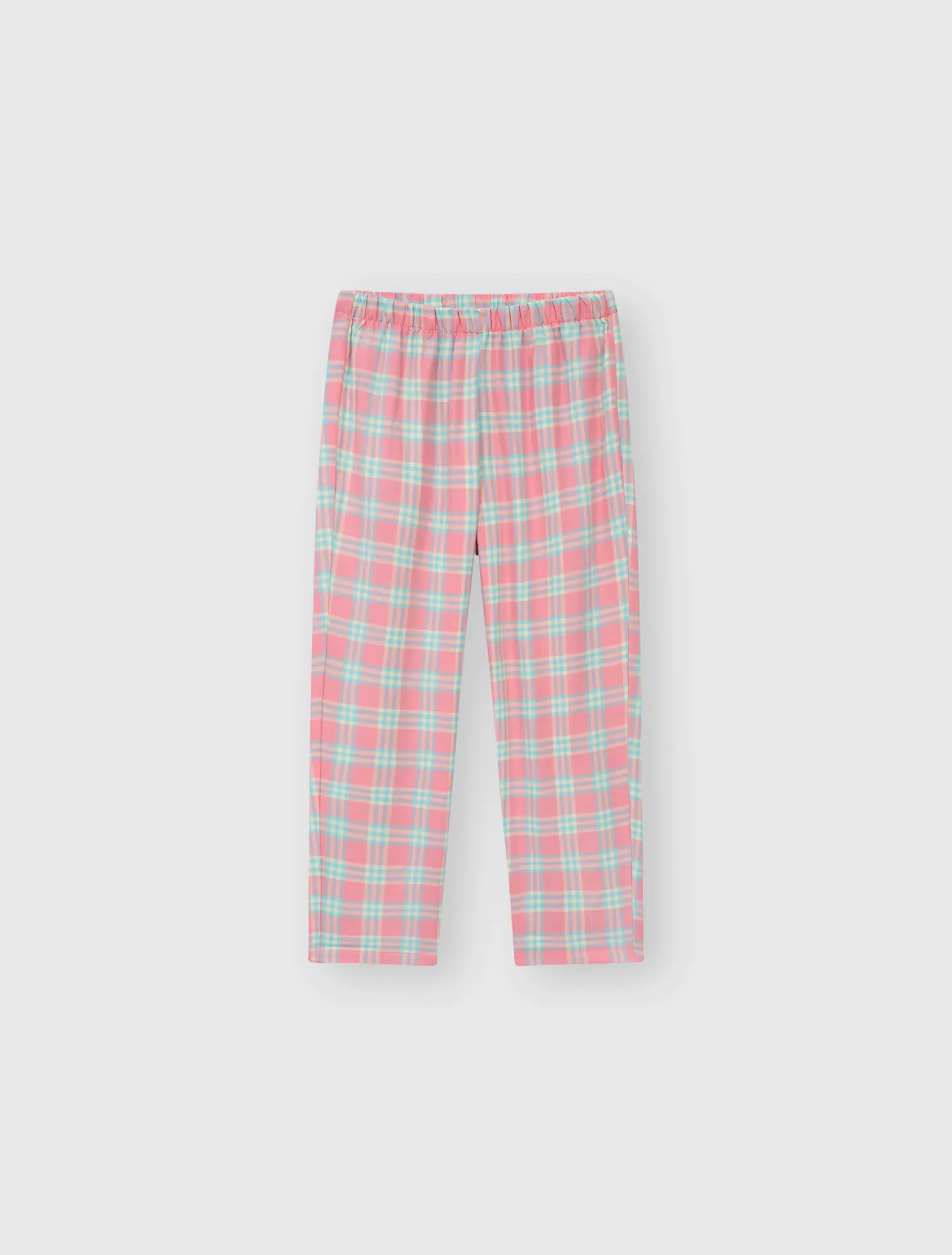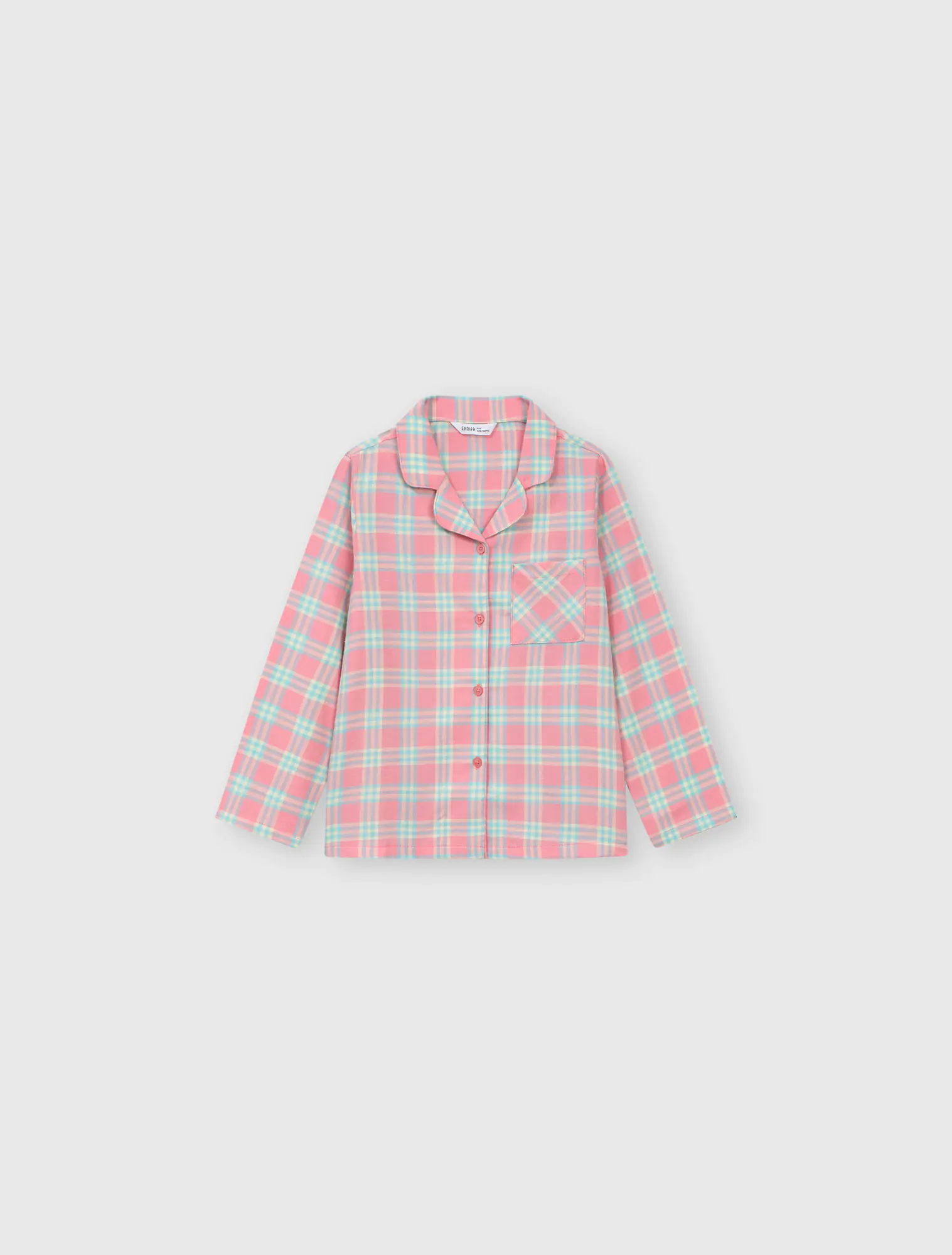 Bộ pyjama bé gái dài tay hoạ tiết kẻ, phom dáng cơ bản, chất liệu cotton mềm mại thoải mái.