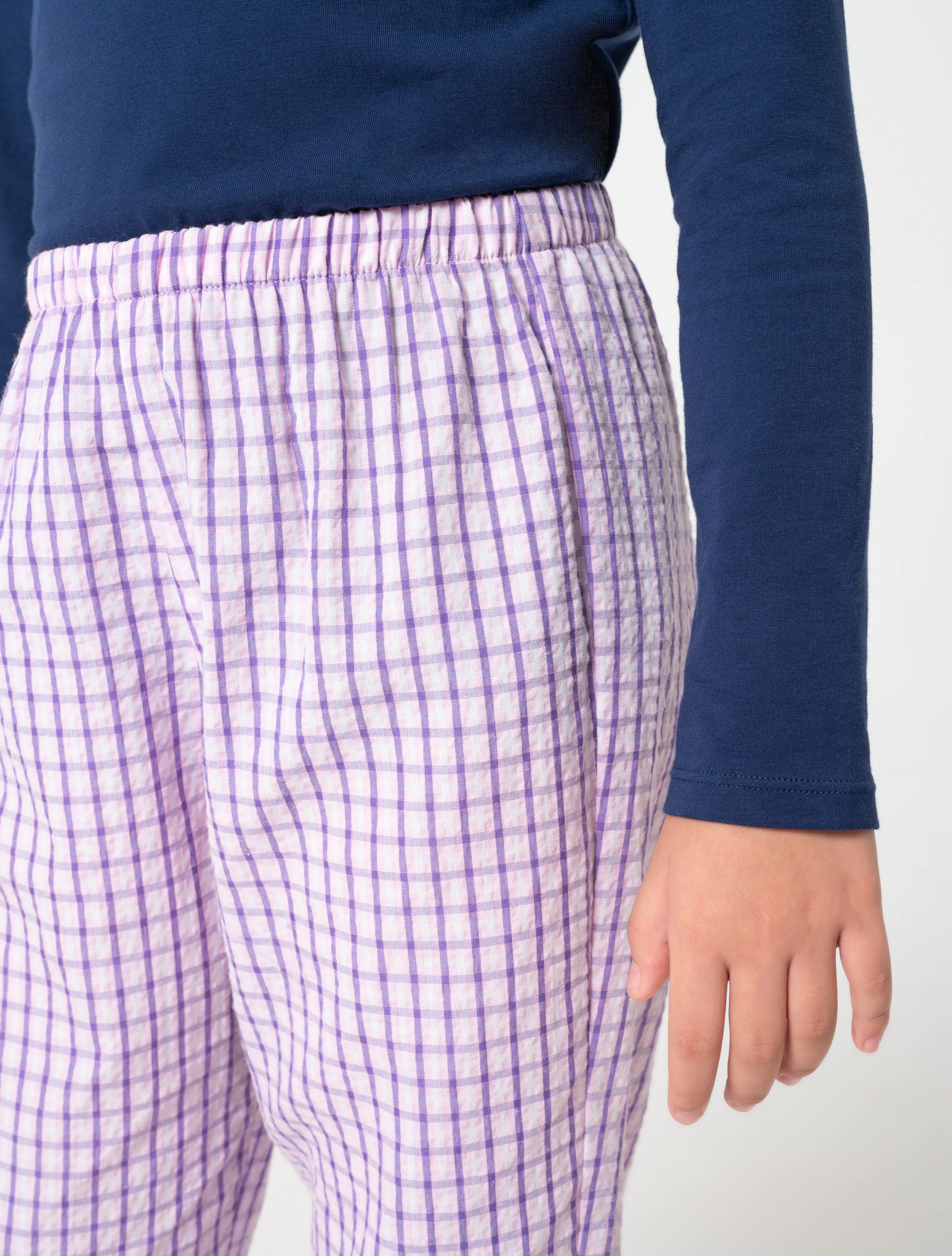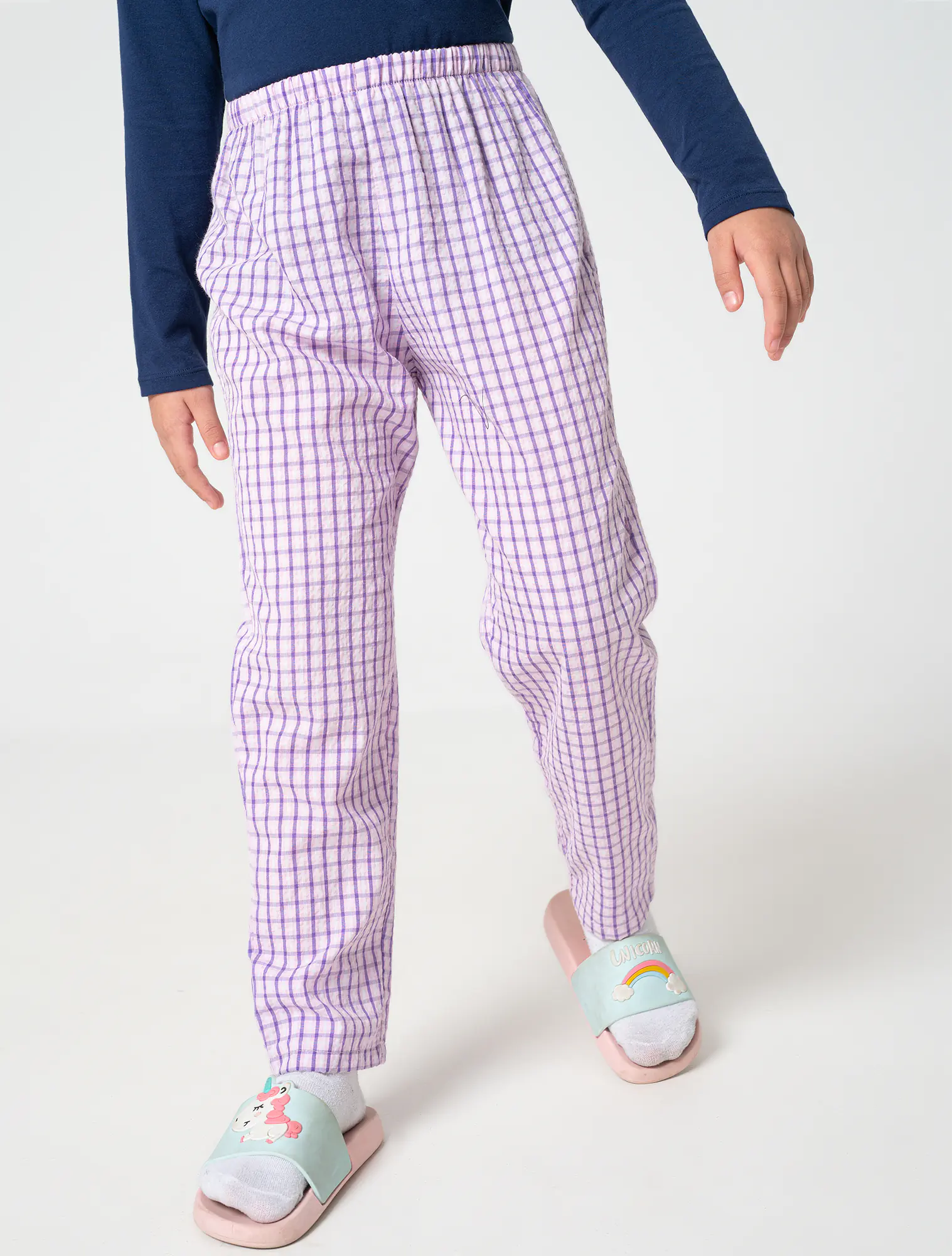 Quần mặc nhà chất liệu cotton pha, quần dài cạp chun.
