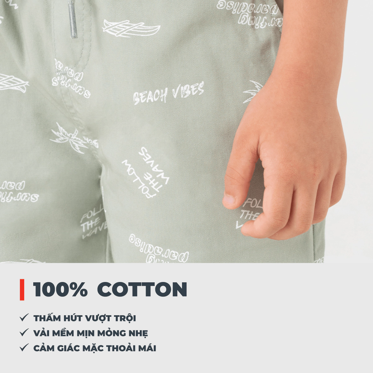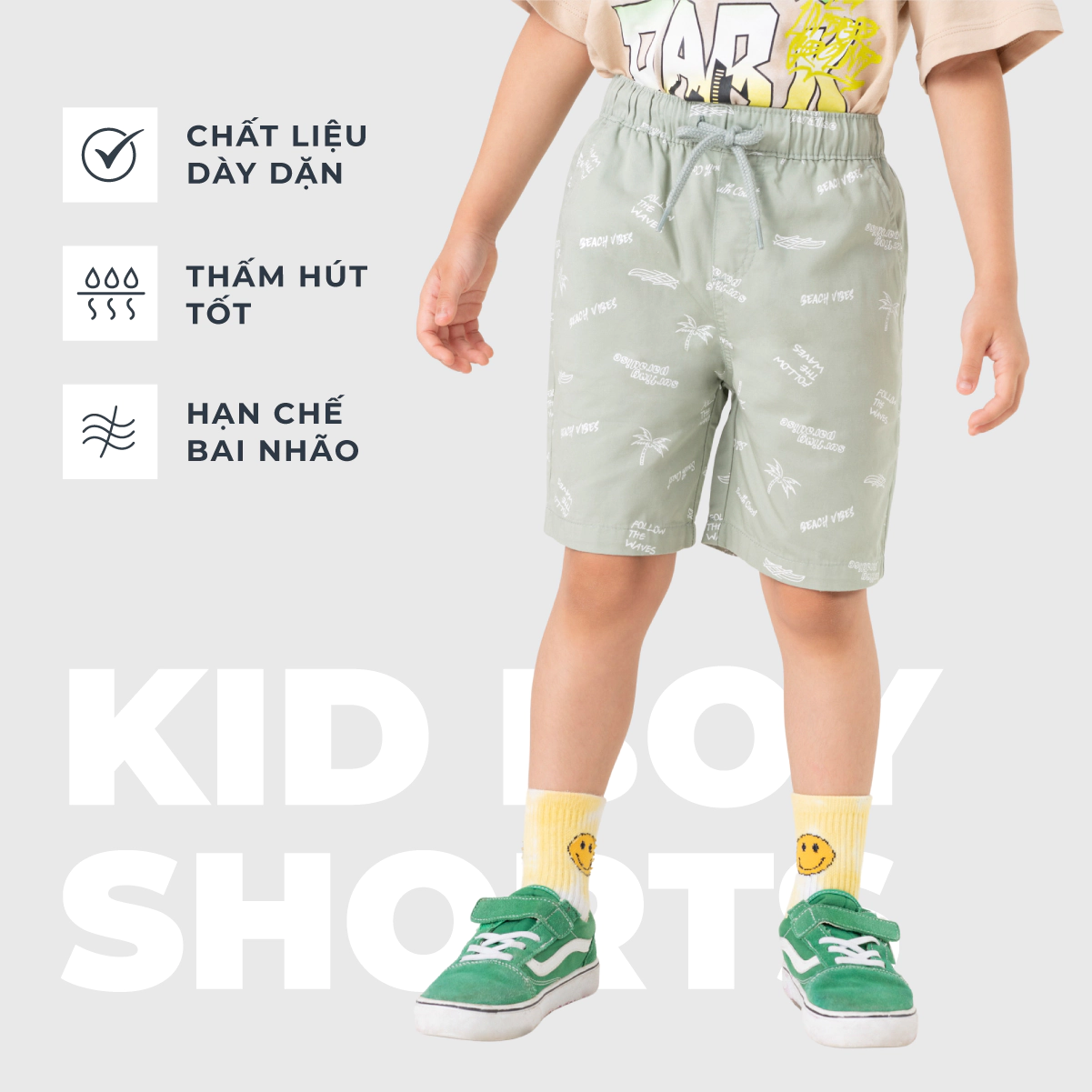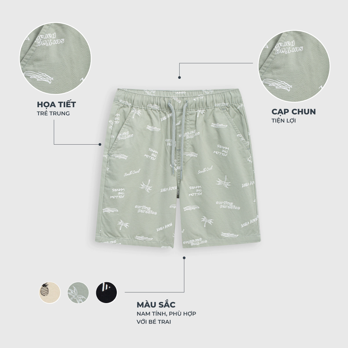 Quần soóc bé trai cotton cạp chun in họa tiết